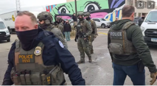 ABCs of federal law enforcement during an immigration raid of Bro-Tex in St. Paul, Minnesota. Hundreds of protesters showed up in response to the raid, pleading with officials to stop abuducting people off the streets. They shoved nonviolent protestors to the ground, hit them with a vehicle, and subjected them to pepper spray. Early estimates are that a dozen Bro-Tex employees were taken.